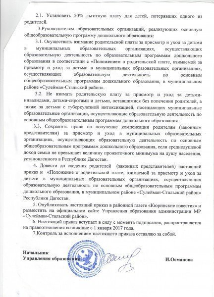 Документ об установлении размера платы, взимаемой с родителей (законных представителей)